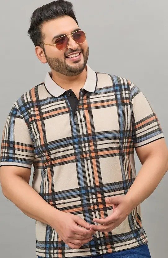 Men Checkered Polo Neck Cotton Blend Multicolor T-Shirt
