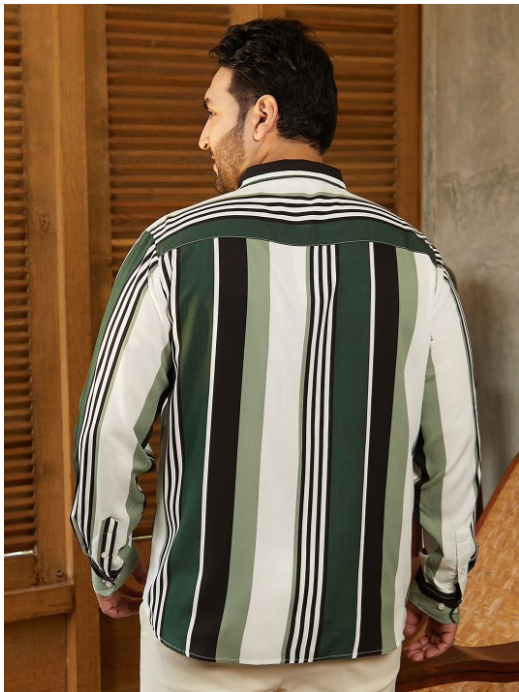 Multicoloured multi stripes striped Casual shirt ,has a spread collar, , long, curved hem