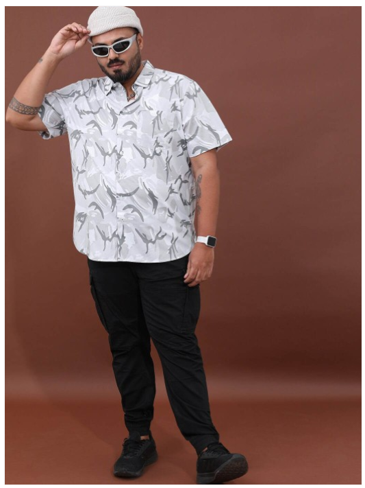 White & grey abstract printed opaque Casual shirt ,has a spread collar, button placket, 1 patch pocket, long regular sleeves, curved hem