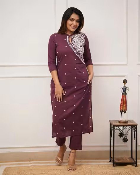 Women Embroidered Straight Kurta & Pants Set