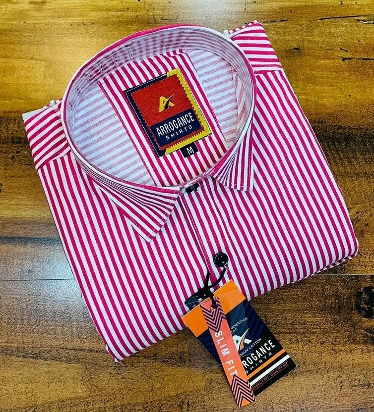 Men Regular Fit Striped Spread Collar Casual Shirt