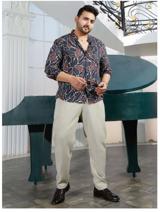 Navy blue & Brown opaque casual shirt for men