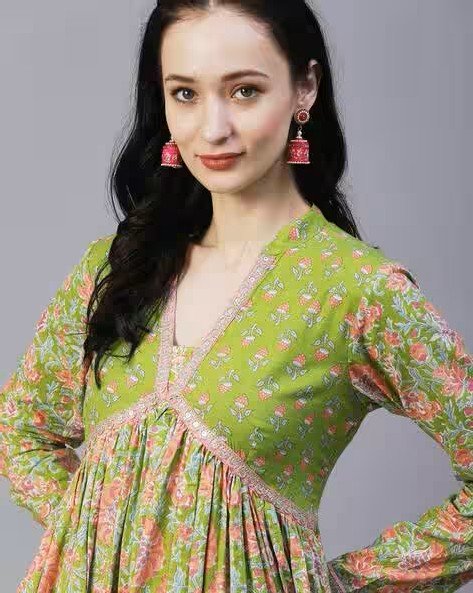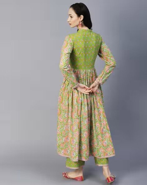 Floral Printed High-Slit Anarkali Kurta & Palazzos Set