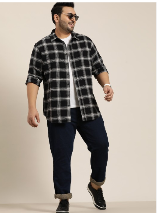 Black other checks checked opaque Casual shirt ,has a spread collar, button placket, 1 patch pocket, long regular sleeves, curved hem