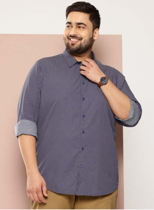 White geometric printed opaque Casual shirt ,has a spread collar, button placket, long regular sleeves, curved hem
