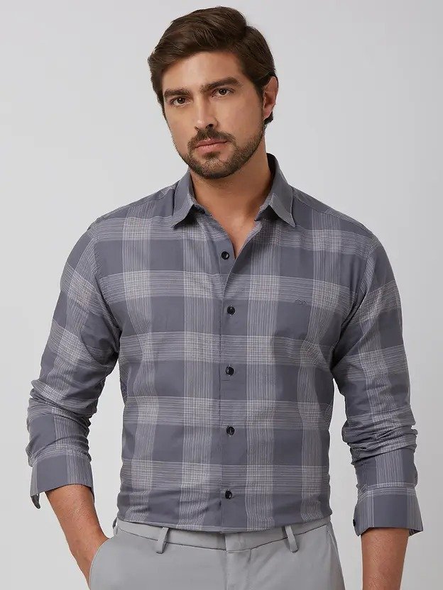 Men Slim Fit Checkered Spread Collar Formal Shirt