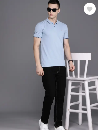 Men Printed Polo Neck Pure Cotton Light Blue T-Shirt