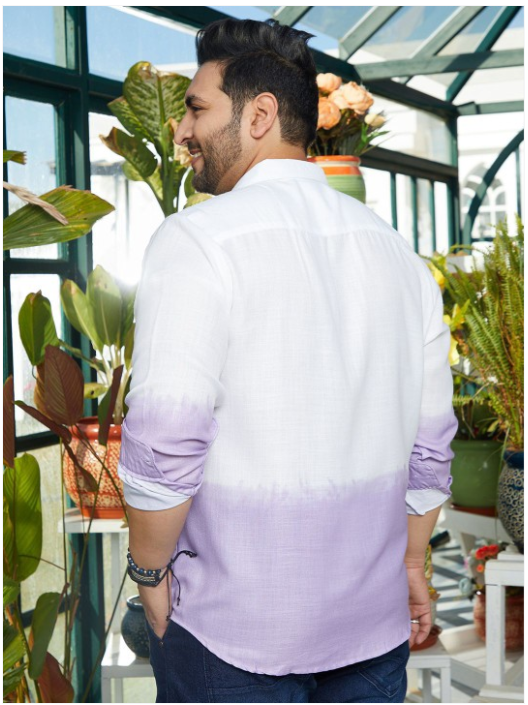 Purple colourblocked opaque Casual shirt ,has a spread collar, button placket, na pocket, long regular sleeves, curved hem