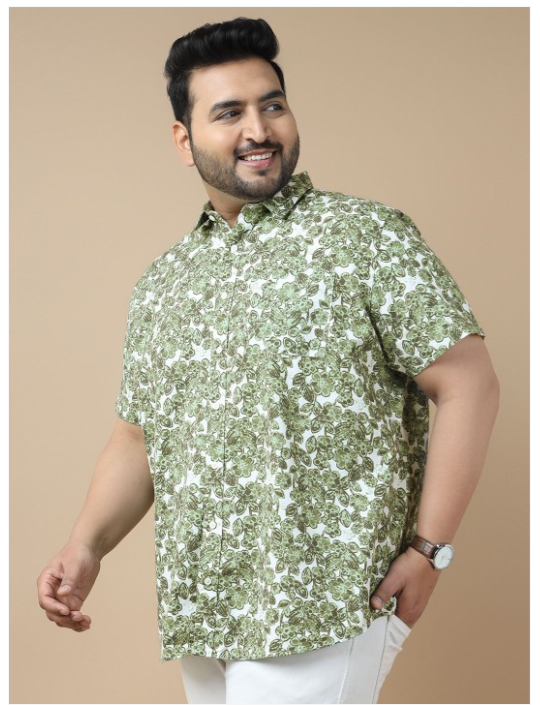 Green floral printed opaque Casual shirt ,has a spread collar, button placket, 1 patch pocket, short regular sleeves, curved hem