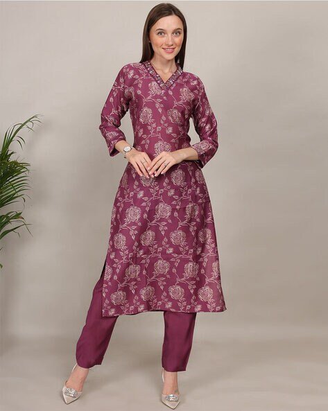 Women Floral Print Straight Kurta Set
