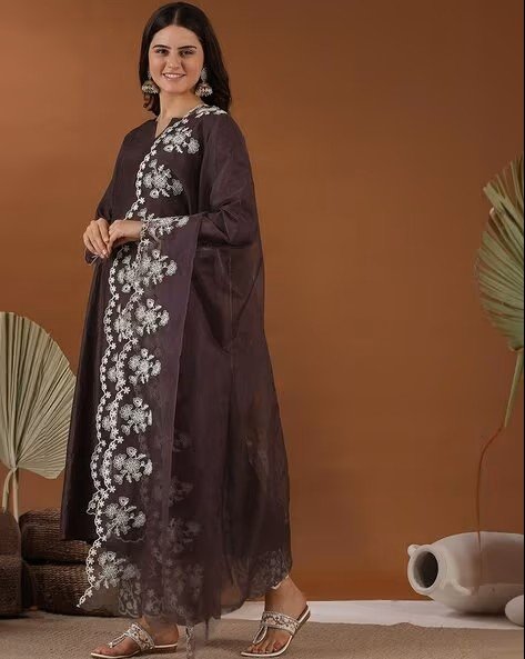 Women Embroidered A-Line Kurta Suit Set