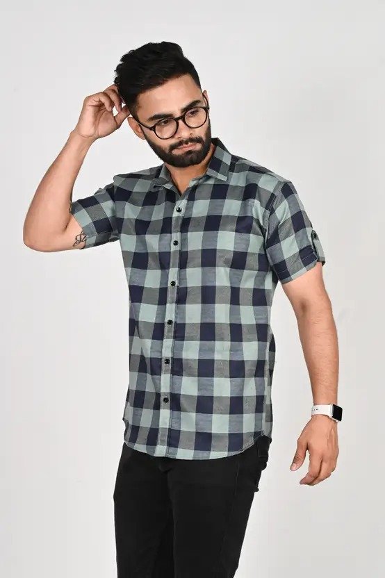 Men Regular Fit Checkered Spread Collar Casual Shirt
