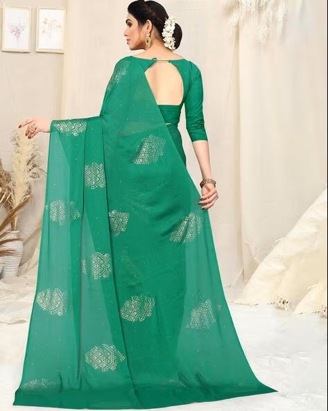 Customizable Blouse Fabric: Includes a contrast plain chiffon blouse fabric that can be stitched to fit sizes ranging from 32 to 42 inches. This customization option ensures a perfect, tailored fit, providing both comfort and versatility.