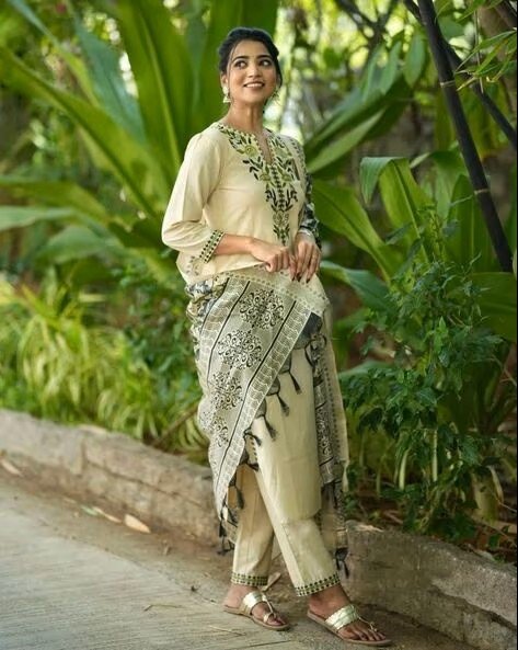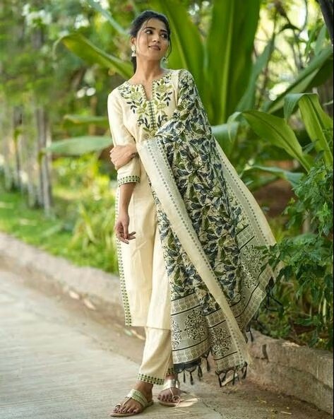 Women Embroidered Straight Kurta Set