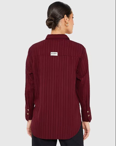Women High-Low Hem Button Detail Crepe Shirt