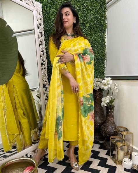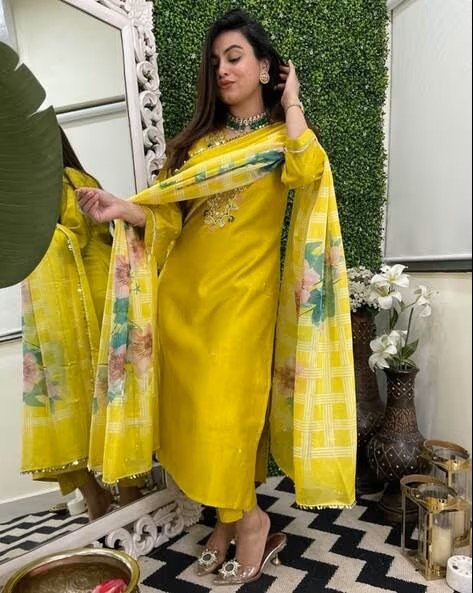 Brighten up your wardrobe with this Women's Yellow Viscose Embroidered Straight Kurta set. The kurta features intricate embroidery, paired with comfortable viscose pants for a chic look. Complete the ensemble with a stylish tabby printed dupatta. Perfect for casual outings or festive occasions, this set offers elegance and comfort.