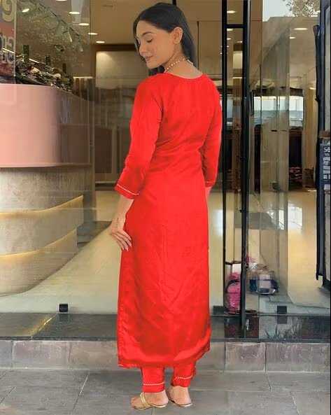 Elevate your ethnic wardrobe with this elegant women’s kurta set featuring a 45-inch straight-fit Chinon kurta with intricate embroidery, soft rayon pants, and a matching Chinon dupatta. Designed with a stylish V-neck, this 3-piece ensemble is perfect for weddings, festive occasions, and cultural events. Available in sizes S to 3XL, it ensures comfort, grace, and a flattering fit for all women and girls.