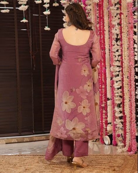 This elegant women’s kurta set features a straight-fit silk kurta with beautiful print work, paired with chanderi pants and a matching silk dupatta. Designed with a round neck for timeless appeal, it offers a perfect blend of comfort and ethnic charm. Ideal for festive occasions, weddings, or traditional functions, this 3-piece set adds grace and elegance to your wardrobe. Available in sizes S to XXL.