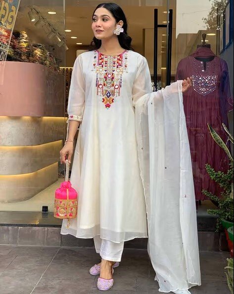 Women Embroidered Flared Kurta Set