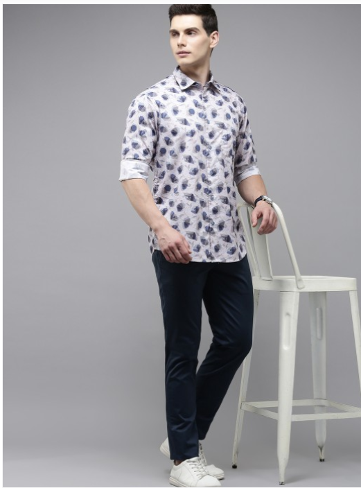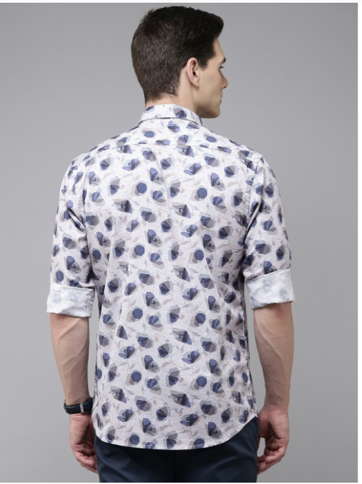 White floral printed opaque casual shirt ,has a spread collar, button placket, 1 patch pocket, long regular sleeves, curved hem