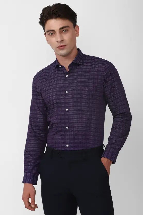 Men Super Slim Fit Checkered Spread Collar Formal Shirt