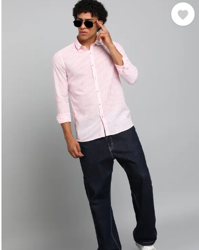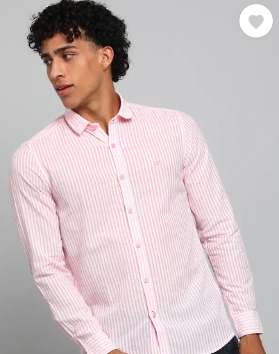 Men Slim Fit Striped Spread Collar Casual Shirt