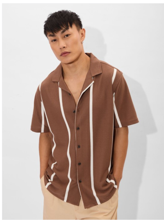 Brown textured striped opaque Casual shirt ,has a spread collar, button placket, na pocket, short regular sleeves, straight hem