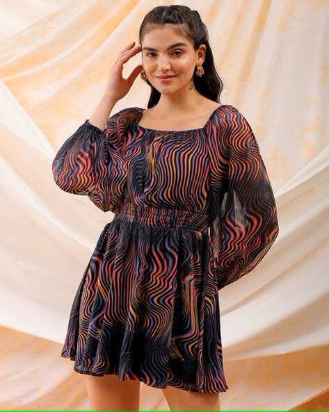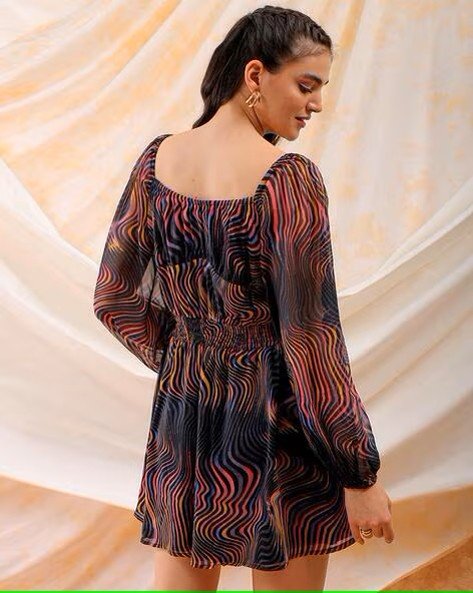 Women Futuristic Printed Fit & Flare Mini Dress