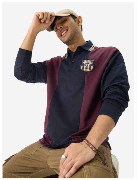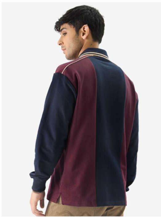 Colourblocked Polo Collar Pure Cotton Oversized T-shirt