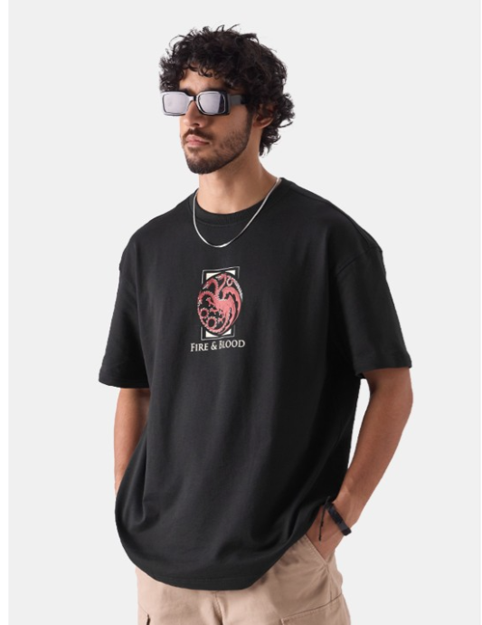 Short Sleeves Round Neck Typography Printed Cotton Oversized T-shirt
