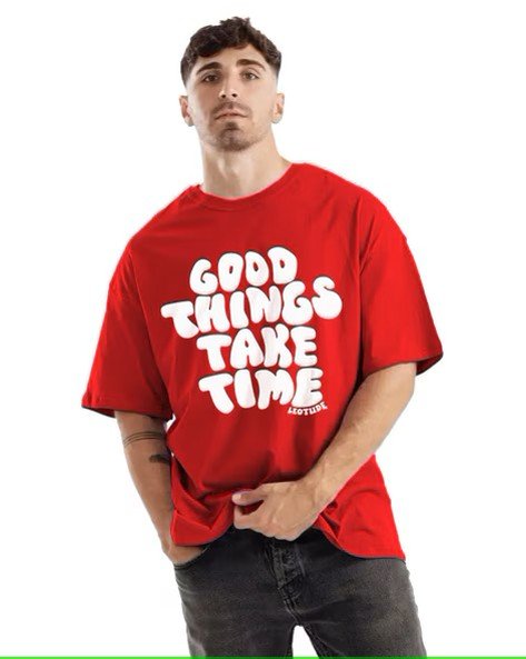 Men Typographic Print Oversized Fit T-Shirt