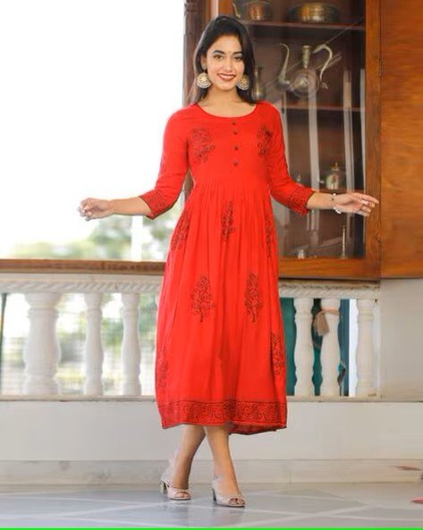 Women Block Print Round-Neck Gown