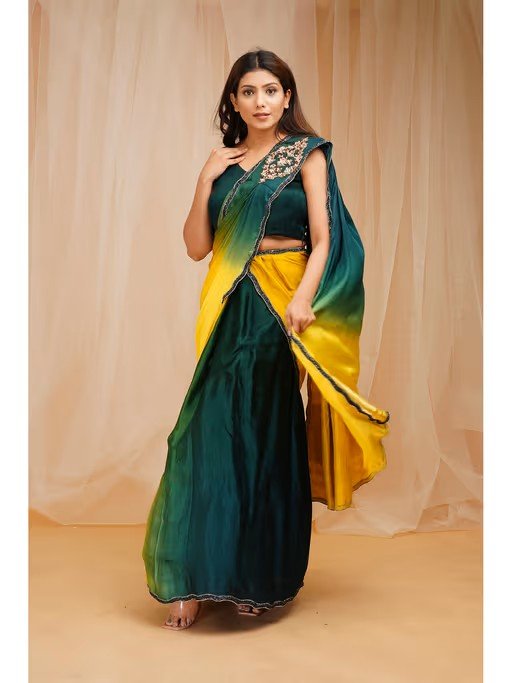 Drape Ready To Wear Saree With Blouse - Yellow with Stitched