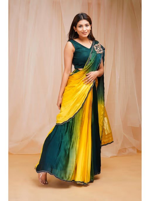 2 piece ready to wear saree set consist of blouse and saree ,handembroidered cutdana border used on edges with cutwork, material used is gajji modal satin