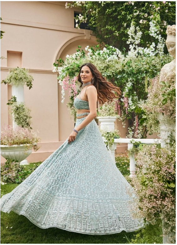 Sky Blue Sequin Embroidered Net Lehenga Set
