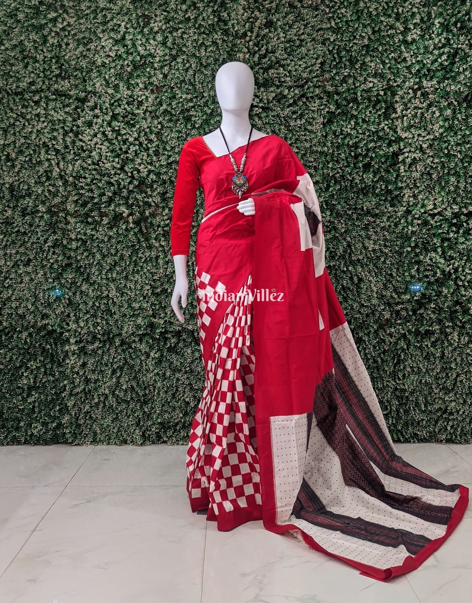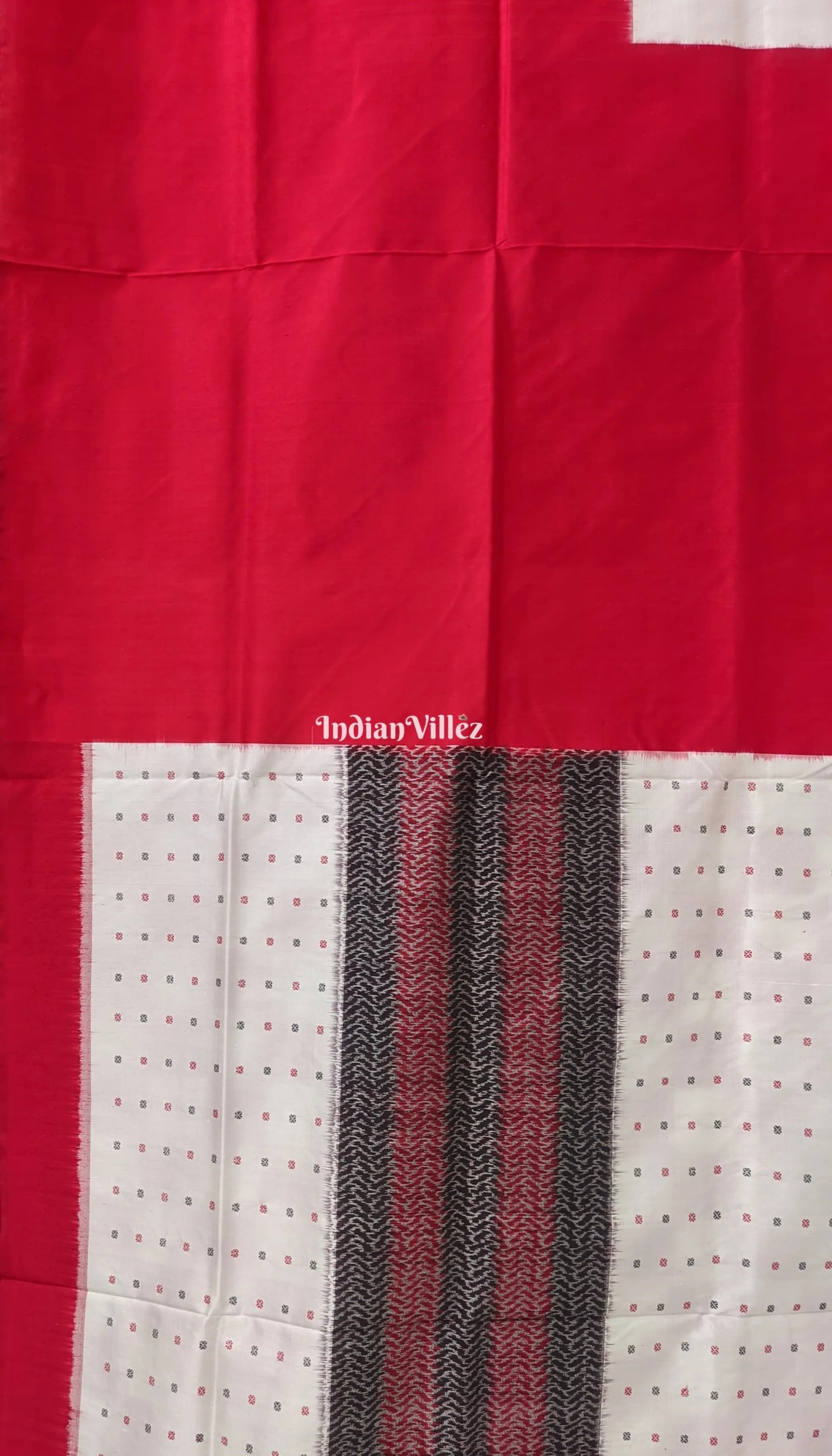 White Red Pasapali Sambalpuri Ikat Silk Saree