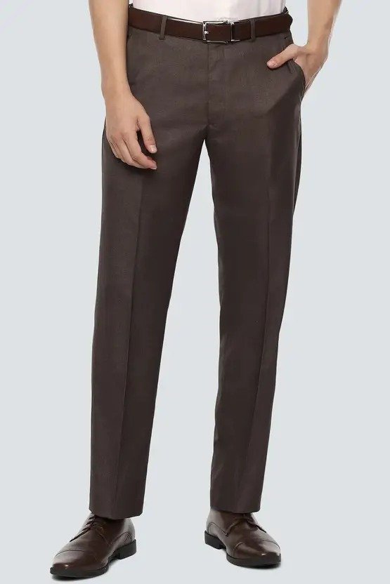 Men Regular Fit Brown Polyester Trousers