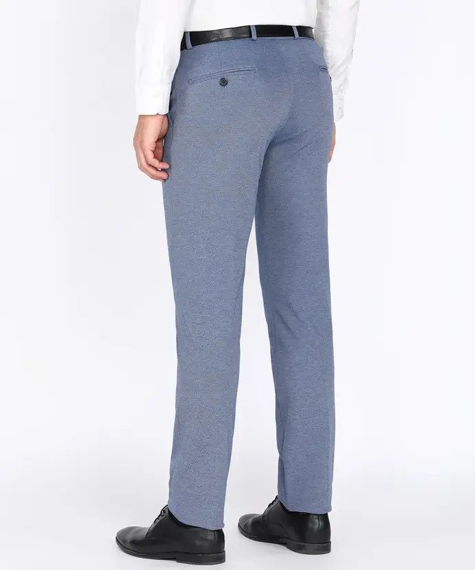 Men Slim Fit Light Blue Polyester Trousers