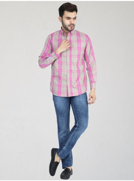 Pink tartan checks checked opaque Casual shirt ,has a button-down collar, button placket, 1 patch pocket, long regular sleeves, curved hem
