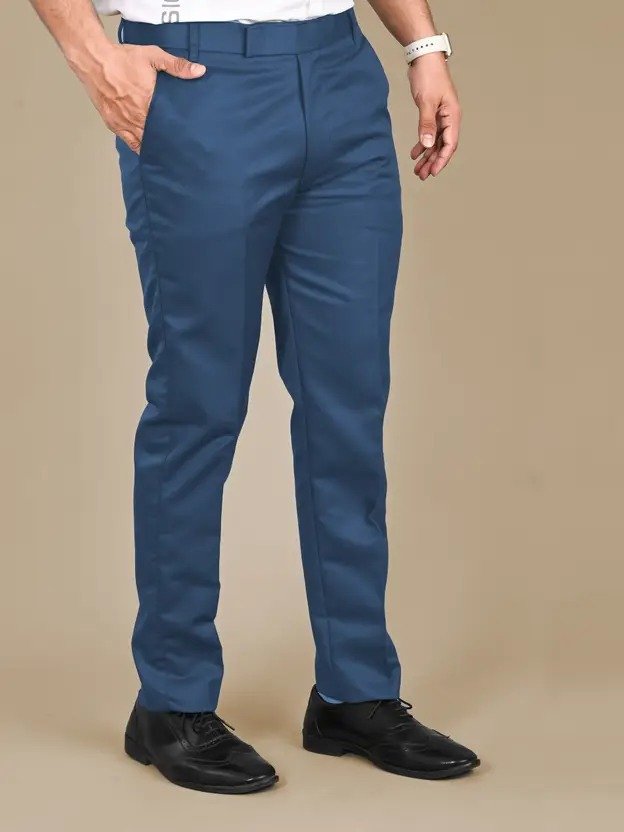 Men Regular Fit Blue Cotton Blend Trousers