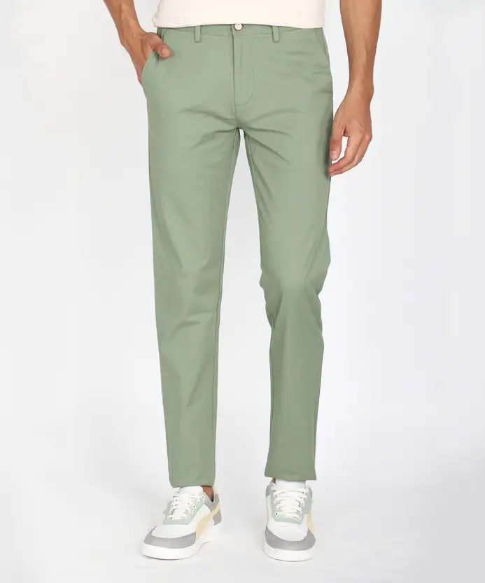 Men Skinny Fit Light Green Cotton Blend Trousers