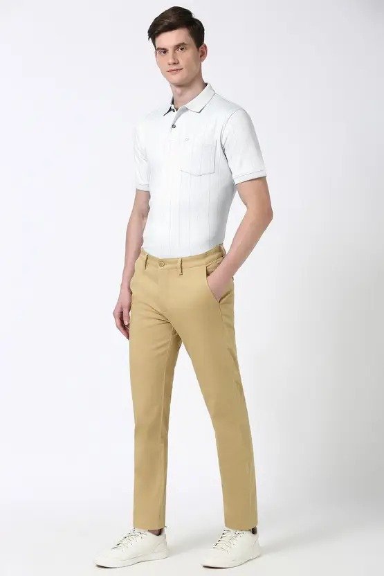 Men Skinny Fit Khaki Cotton Blend Trousers