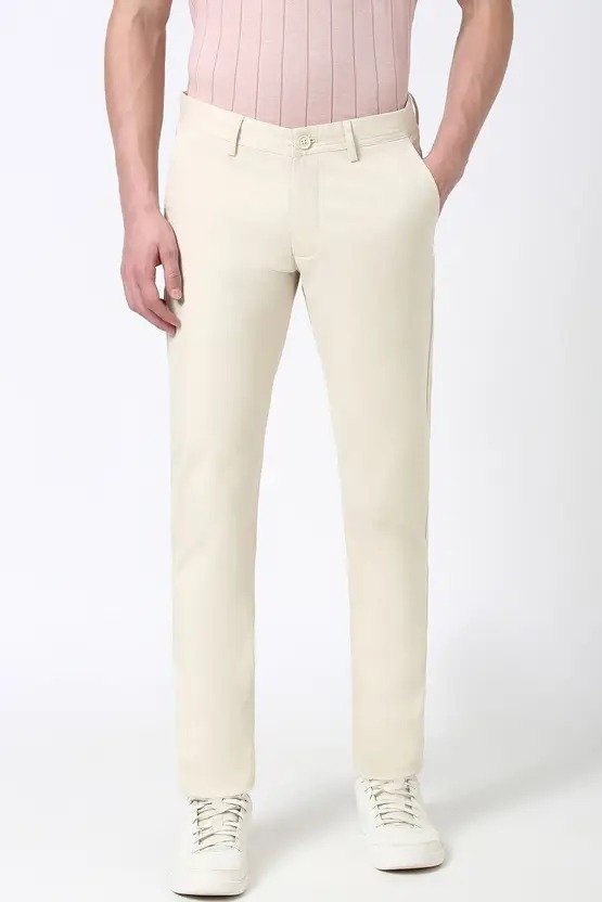 Men Skinny Fit Beige Cotton Blend Trousers