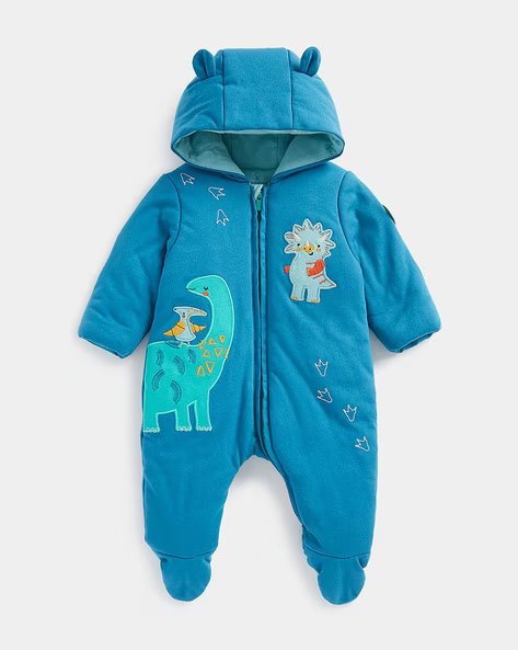 Dinosaur Applique Zip-Front Hooded Sleepsuit
