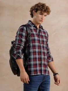 Men Slim Fit Checkered Mandarin Collar Casual Shirt