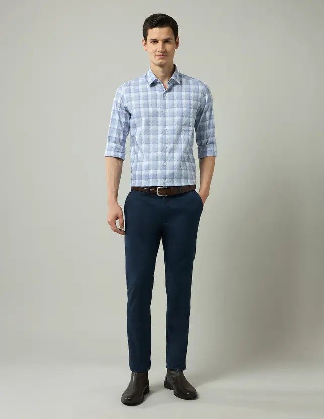 Men Slim Fit Checkered Cut Away Collar Formal Shirt