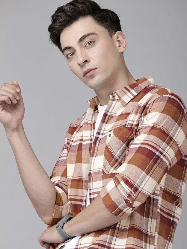 Men Slim Fit Checkered Button Down Collar Casual Shirt
