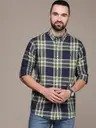 Men Regular Fit Checkered Button Down Collar Casual Shirt