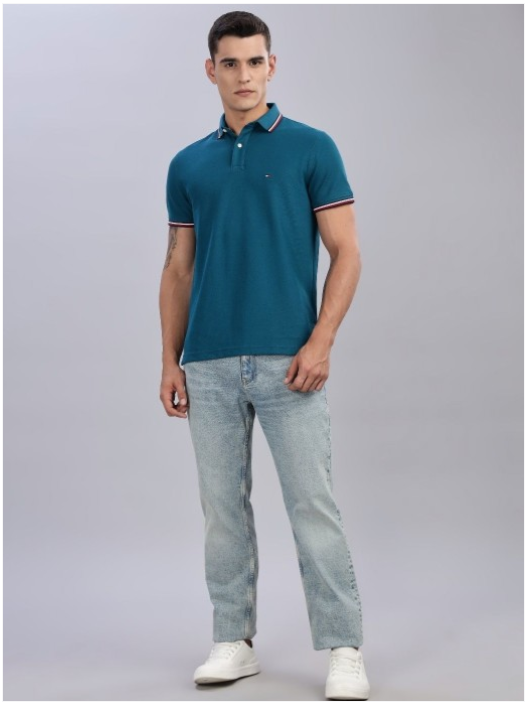 Men Solid Polo Collar Cotton T-shirt