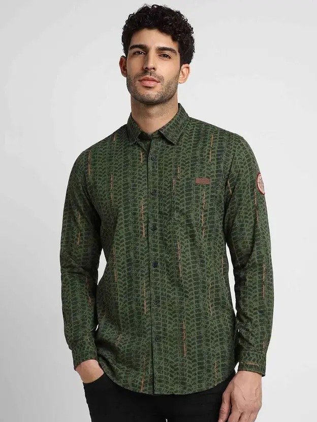 Men Slim Fit Printed Spread Collar Casual Shirt